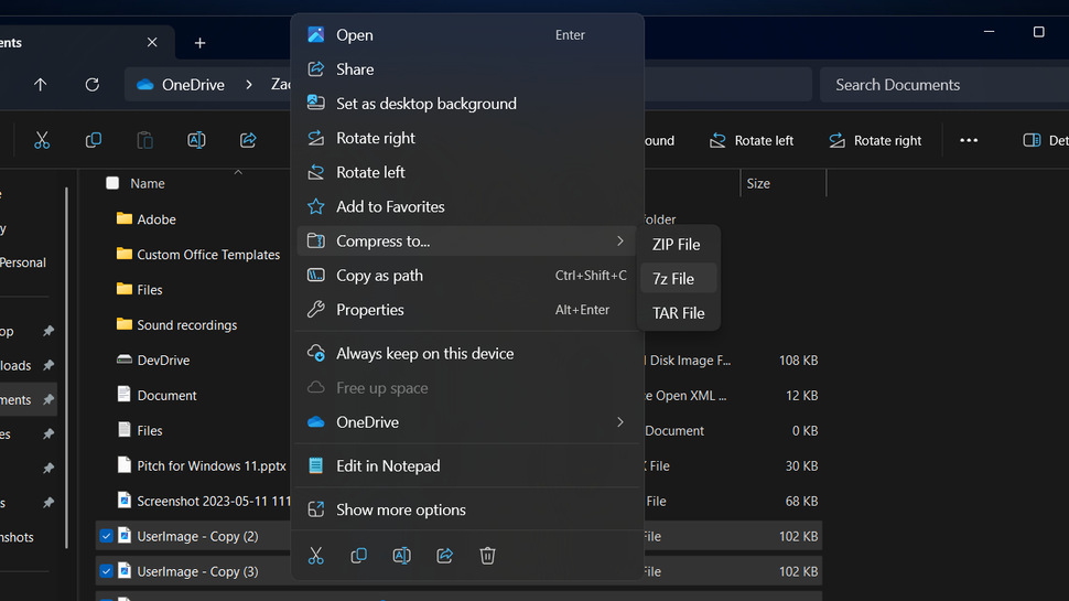 Seperti pada setiap versi baru Windows, Microsoft membuat lebih banyak perubahan pada aplikasi File Explorer dengan versi 24H2. Rilis ini memberikan kemampuan untuk membuat file arsip terkompresi 7zip dan TAR selain file ZIP. Rilis 23H2 menambahkan kemampuan untuk mengekstrak file arsip ini, tetapi tidak untuk membuatnya. Microsoft juga mengklaim bahwa kinerja File Explorer saat membuka file ZIP besar telah ditingkatkan.